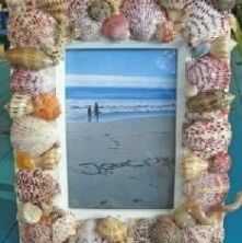 С помощью морских ракушек можно красиво украсить обычную рамку для фото. Вам понадобятся любая рамка, клей, лак и, конечно, ракушки. Подбираем красивую композицию, затем с помощью клея приделываем их к основе, покрываем лаком. Когда высохнет вставляем фотографию с отпуска и готово.
