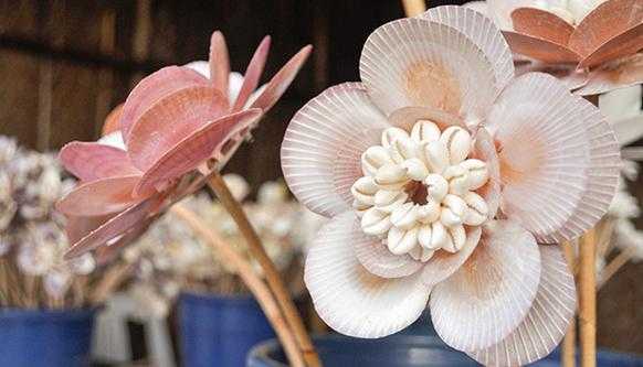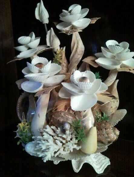 Большие ракушки можно использовать в качестве вазы. Необходимо налить в нее воды и положить туда небольшие цветки. Можно взять их без стебля.