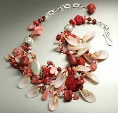 Из ракушек получаются очень стильные украшения. Например, это красное колье.