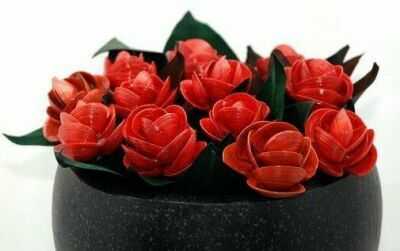 Возьмите пластилин, скатайте его в шарик и приделайте пять, желательно удлиненных или похожих на лепестки ракушек. Затем крепите, получившийся цветок к палочке.