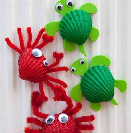 Поделки из ракушек мы начнем с трех, самых простых вариантах применения ракушек для детских поделок.