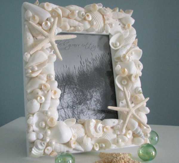 Очень популярны рамки для фотографий, украшенные морскими ракушками. Для их изготовления нужно совсем немного: песок, ракушки, клей ПВА, самые дешевые фоторамки и Ваша фантазия.