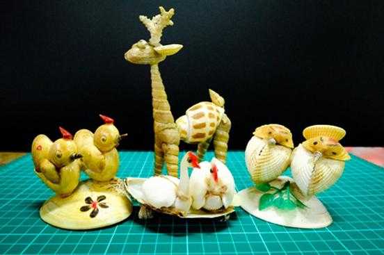 Из ракушек можно делать и сложные композиции. Например, очень много ракушек было использовано при изготовлении этого зверинца.