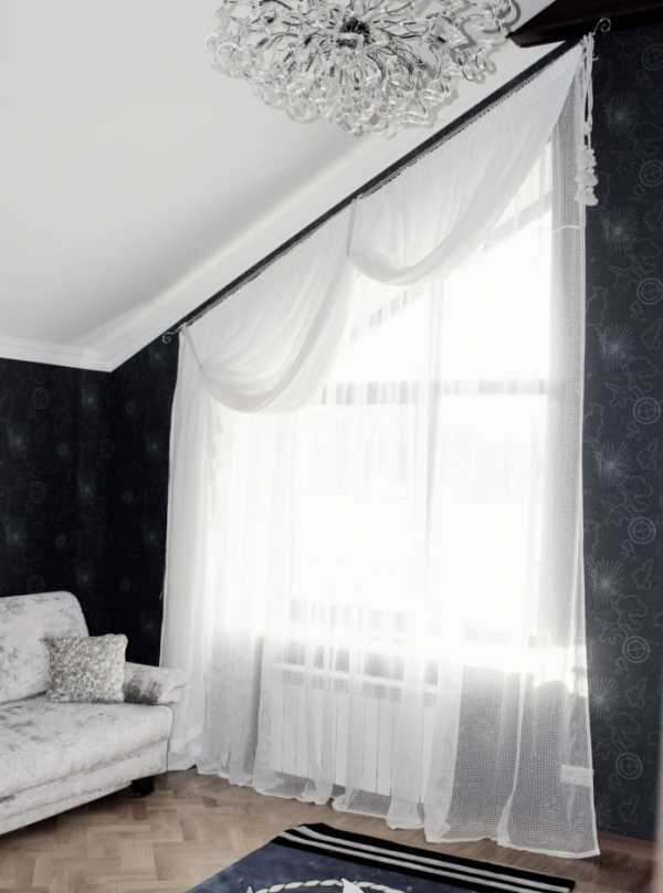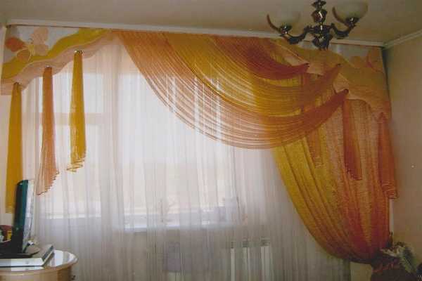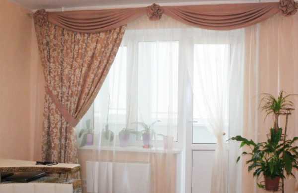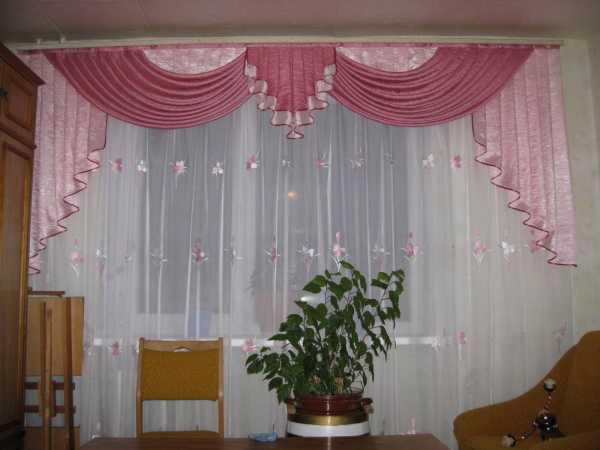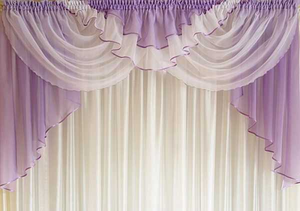 На фото нежный шифоновый ламбрекен сформирован перекидом цельнокроеного полотна.