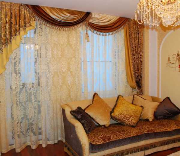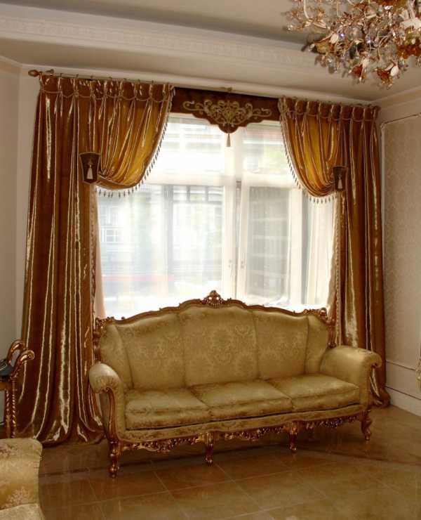 Комнате, оформленной в стиле ретро, более всего пойдет тяжелый бархат. Из яркого дорогого легкого текстиля с крупными складками – подойдут гостиной, выполненной в восточном стиле. Классика предполагает плотный текстиль, возможно, украшенный вышивкой умеренных тонов.