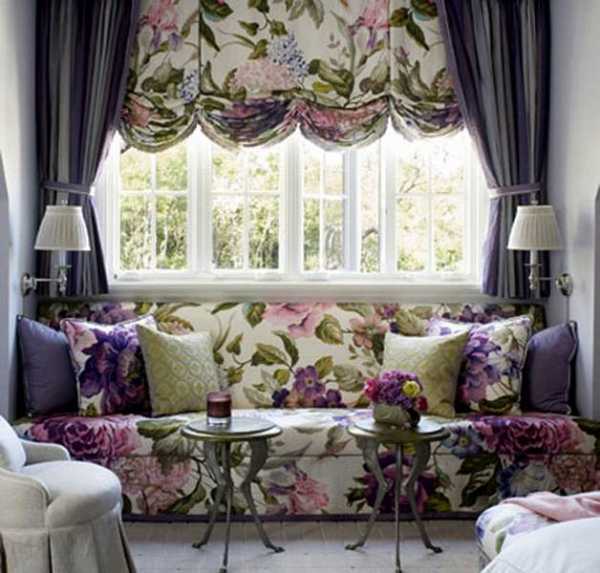 При выборе нужно учитывать и размеры окон. Если проемы большие, прекрасное решение – ламбрекены с мелким принтом и воздушными полупрозрачными занавесками. Если же хочется визуально сделать окно меньше, то рисунок должен быть крупным.