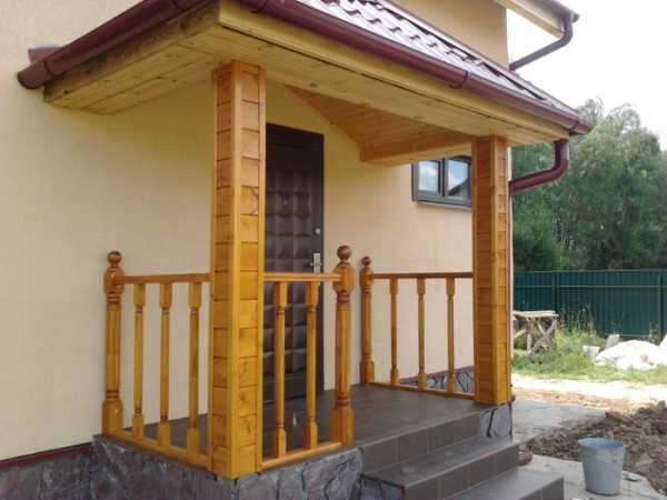 - Навес – немаловажная составляющая крыльца. Он может крепиться непосредственно к стене, а может быть сделан на опорных столбах.