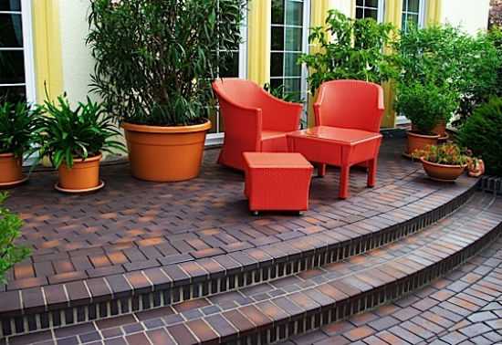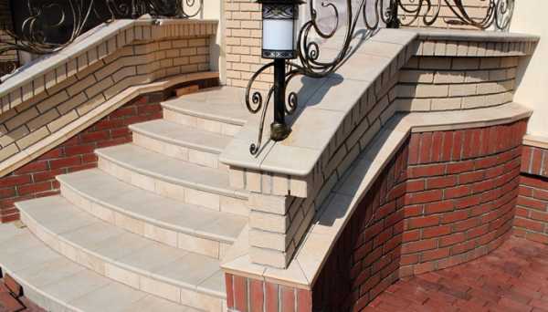 Ступени кирпичного крыльца можно выложить клинкерной плиткой, керамогранитом, тротуарной плиткой и т.д. В сельском домике или на даче красиво будет смотреться облицовка из бутового камня или дерева, а в коттедже кирпичное или блочное крыльцо можно отделать гранитом, мрамором, ониксом.