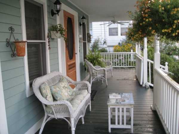 Если его правильно оформить, то это будет прекрасная визитная карточка самого владельца. Декоративными элементами могут быть статуэтки, фонари, всевозможная растительность и даже картины. А как приятно отдохнуть летним вечером за столиком на собственном крыльце. Если позволяет площадь, то вы вполне можете разместить там небольшой стол и стулья.