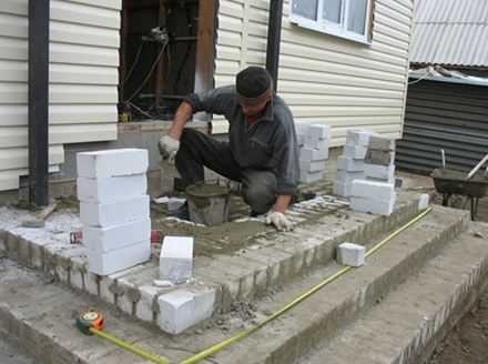строительство фундамента, технология укладки и выбор материала с фото примерами, а также советы как сделать крыльцо из блоков своими руками