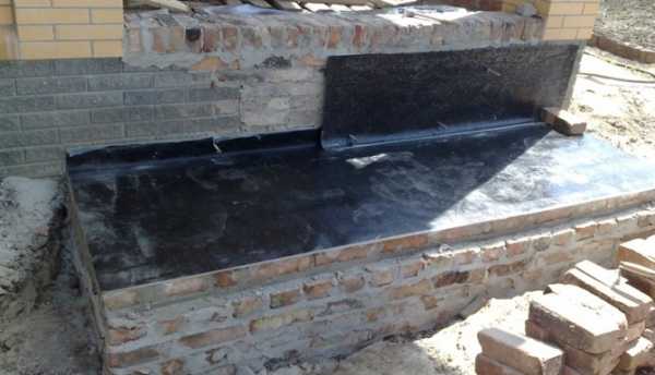- Обработка вертикальных поверхностей. Если вы строите крыльцо для частного дома из кирпича, дополнительной гидрозащите подлежит и цоколь жилища. Нужно проложить листы рубероида или гидроизола в тех местах, где к стене будут прилегать конструктивные элементы пристройки.