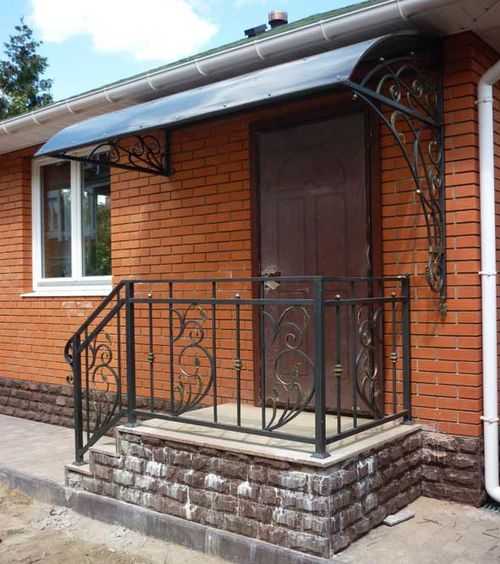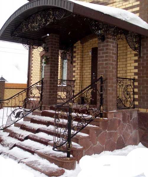 Красивое крыльцо кирпичного дома, фото как правильно сочетать камень бут, клинкер, кирпич и ковку