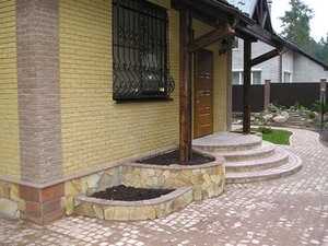 Фото крыльца из брусчатки, этот материал смотрится гармонично со строениями из любого материала, а кроме того, он стирает границы между участком и домом, одно плавно перетекает в другое