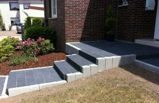 Красивое крыльцо из блоков своими руками, на фото пристройка из бордюров