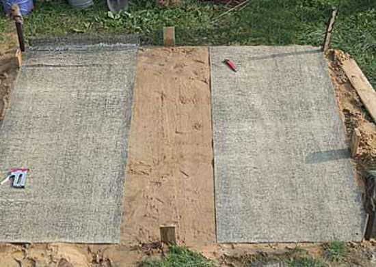 Совет: Чтобы проверить качество песка насыпьте его в пластиковую бутылку, залейте водой, потрясите. Если вода помутнеет, значит в песке большой процент содержания глины, и его для устройства фундамента использовать нельзя.Застелите подготовленную подушку слоем геотекстиля или рубероида, стыки внахлест на 100 мм, их обязательно проклеить, можно спаять лампой или горелкой.