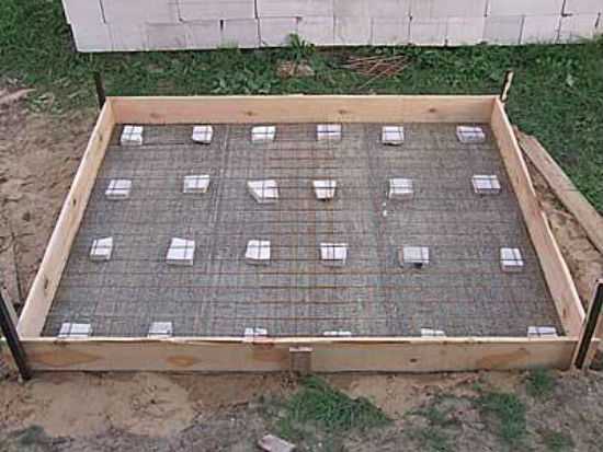 Армирующий каркас укладывайте на камни или подставки, чтобы она утонула в бетона