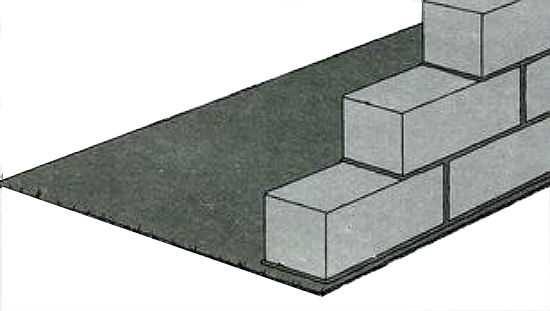 Делайте работу аккуратно, чтобы после окончания строительства слой рубероида не выглядывал за пределы кладки, так как это испортит зрительное восприятие фасада дома.