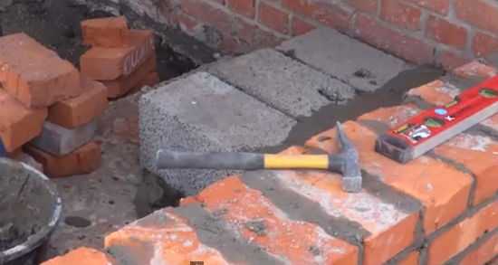 . Можно использовать бутовый кирпич, цена которого невелика. Верхнюю часть необходимо тщательно выровнять с помощью цементного раствора.