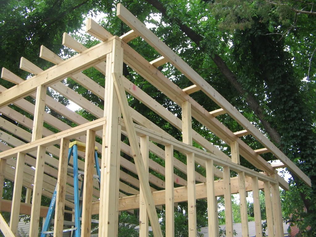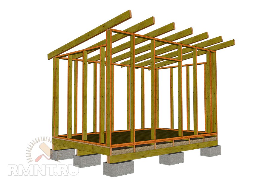 Алгоритм устройства стропильной системы для односкатной крыши над навесом подразумевает следующие действия: