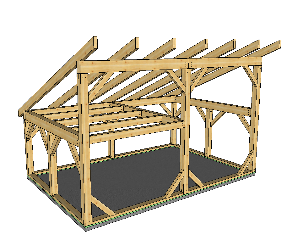 Так как разговор идет о постройке с крышей, то к каркасу для сарая добавляется стропильная система с обрешеткой. И хотя отношение к каркасной конструкции они не имеют, при разработке чертежа хозблока с односкатной крышей их придется учитывать.
