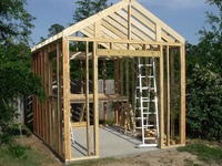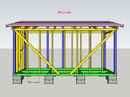 - Собирается он в виде куба. Затем на фасадной части добавляются стойки небольшой длины и сечения, которые станут опорами для стропильных ног.