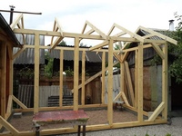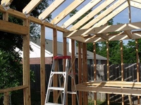 Приведенная в примере технология справедлива не только для устройства односкатных крыш над капитальными пристройками. Так же крытые крытые веранды с террасами, торговые блоки.