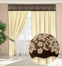 Любые шторы с ажурным ламбрекеном смотрятся очень элегантно, они помогают формировать четкость линий, отчего вся композиция, только выигрывает. Видов кроя великое множество. Самые простые изделия выглядят как обрезок материала, низ которого выбит кружевной вышивкой. При необходимости такие элементы можно облагородить, подвязав бантами, украсив цветами, любыми другими интересными деталями.