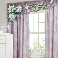 - Для украшения ламбрекена часто используют всевозможные предметы декора. Термоаппликация прекрасно поможет разбавить цвет и рисунок. Например, очень красиво смотрятся цветы, приклеенные поверх кружевного ламбрекена. Актуально смотрятся и трафаретные украшения. Можно подобрать интересную вышивку на шторы, перекликающуюся с бандо.