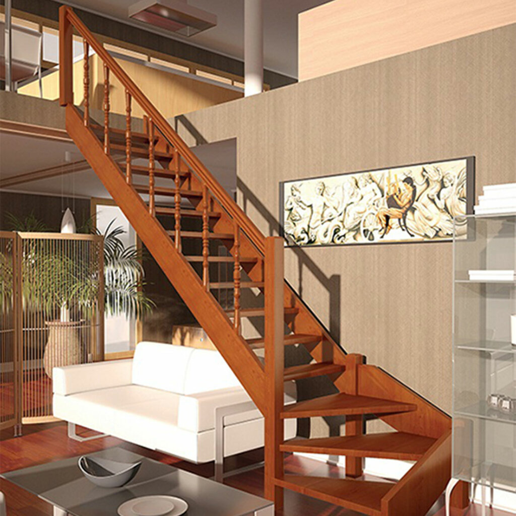 Конструкция должна сочетаться с общим стилем интерьера и фактурой стенВыделяются следующие разновидности лестниц: