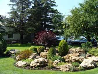 Растительность на горку подбирают с учетом общего замысла и стиля декора. Ландшафтный дизайн предполагает множество стилей оформления альпинария, в том числе каменистый рельеф, пустынный сад, озера с мостиками, непременно гармонирующие с выстроенным сооружением.