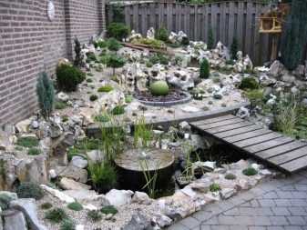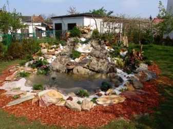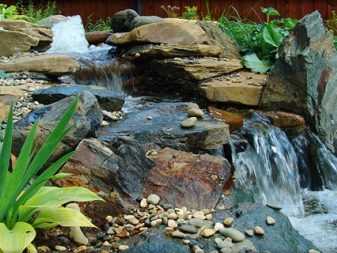 Высшей точкой мастерства относительно сооружений, имитирующих природный ландшафт, считается альпинарий с водоемом. Журчание воды в ручье и проплывающий мимо пожелтевший листочек вносят в композицию романтику и гармонию. Некоторые умельцы не жалеют труда для создания альпинария с настоящим фонтаном.