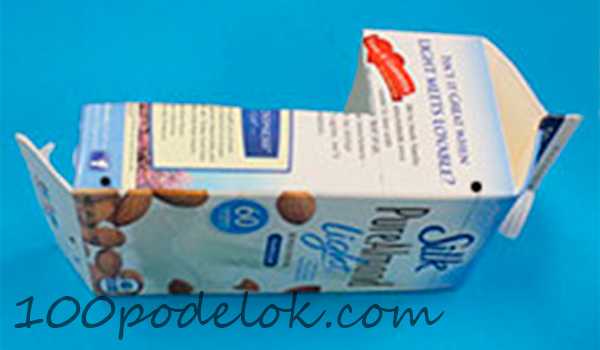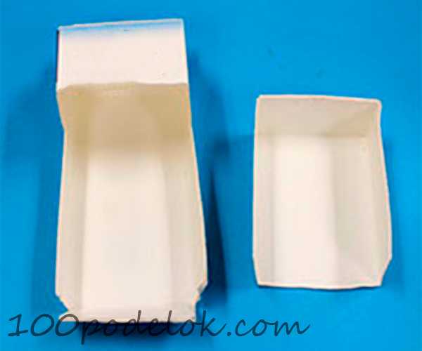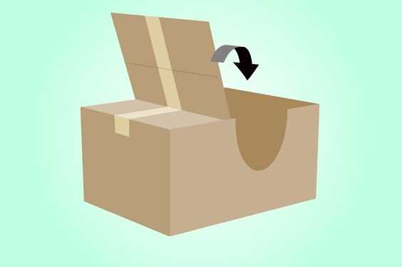 Положите коробку на бочок и верхнюю часть срежьте, отступив от края на 6-7 сантиметров с одной стороны и 3-4 сантиметра снизу.