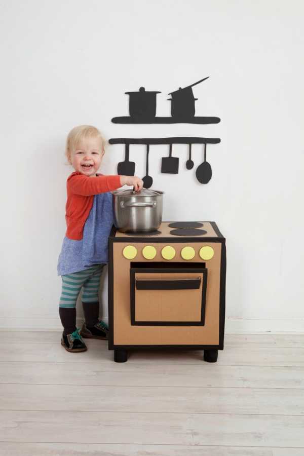 Сперва было сложно поверить, что из обычных коробок получится уютная игрушечная кухня.
