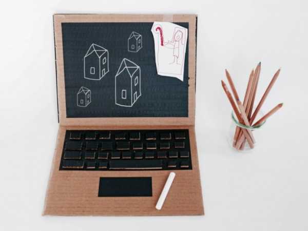 Дети очень любят копировать взрослых. Пусть у вашего ребенка появится свой «ноутбук», на который можно даже что-то проливать).