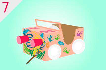 Если у вас дома есть ненужные одноразовые тарелки, сделайте из них колеса. Если их нет, просто нарисуйте их фломастером, или сделайте из других подручных средств.