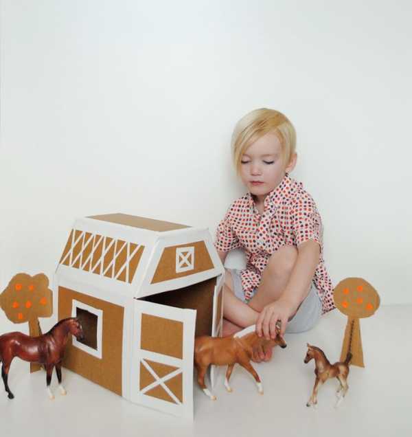 Для любимых игрушек-лошадок можно сделать такую конюшню