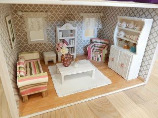 Источник: PinterestЭто кукольный домик, оформленный в пастельных тонах.Текстуры светлых тонов дополняют красивый интерьер, делая его привлекательным дополнением к любой гостиной.