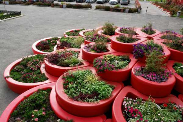 Конструкция клумбы такого типа такова, что вода из нижних ярусов будет оттекать, собираясь внизу. Соответственно, для самого нижнего яруса нужно подобрать влаголюбивые цветы и растения и сделать дренаж, а для верхних – такие, которые не боятся засухи. При создании многоярусной клумбы выбирайте цветы с продолжительным цветением, которые цветут в одно время – так клумба долгое время будет сохранять привлекательный вид и не нуждаться в обновлении. Хотя некоторым наоборот нравится менять внешний облик клумбы на протяжении лета, высаживания новые цветы. Это дело вкуса.