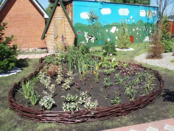 Для цветников такого плана целесообразно использовать натуральные материалы в виде дерева и камня. Они не только экологичны, но и гармонично вписываются в любое оформление дачной территории.
