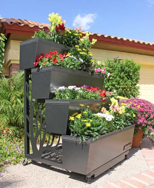Ярусные клумбы можно изготовить на заказ в специализированных компаниях, оговариваются размеры, используемые материалы и сложность конструкции.