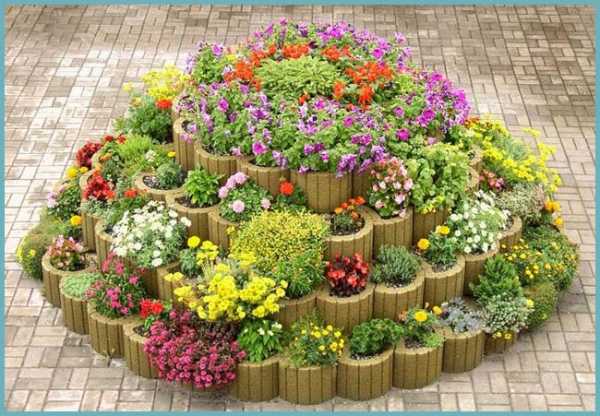 В результате получается красивая объемная клумба, которая украсит любой уголок в саду. Цветы хорошо подобраны по цвету для каждого яруса, образуя гармоничное сочетание