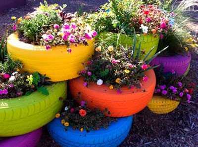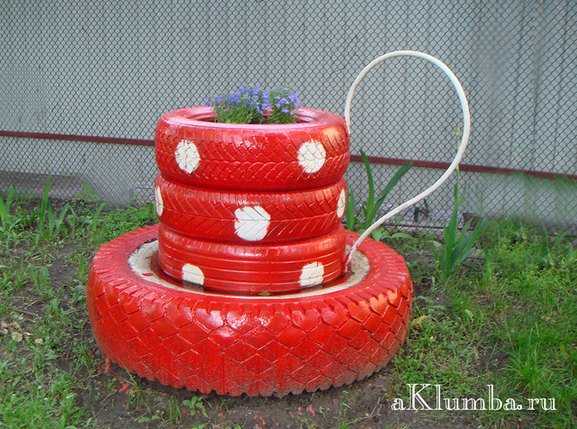 Такое «богатство» есть у многих дачников. Дав себе возможность пофантазировать, можно создать отличную клумбу-пирамиду при помощи отработанных покрышек. А если они еще и разного диаметра, то неизбежно получится отличная каскадная композиция, которая украсит любой участок. Из этого материала можно изготовить множество садовых скульптур-клумб, вазонов, мини-цветников с ярусными включениями.