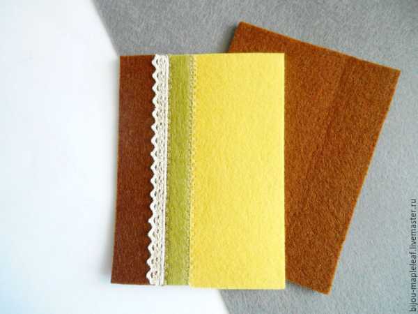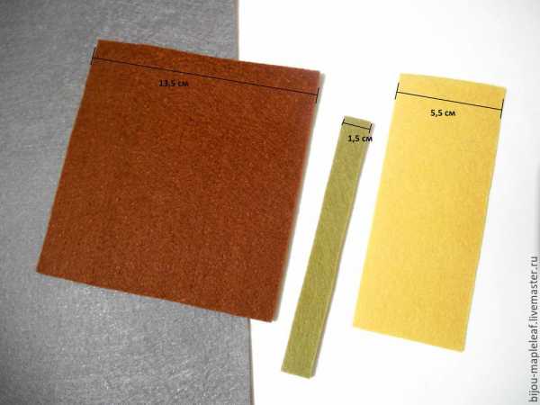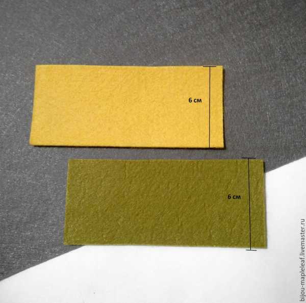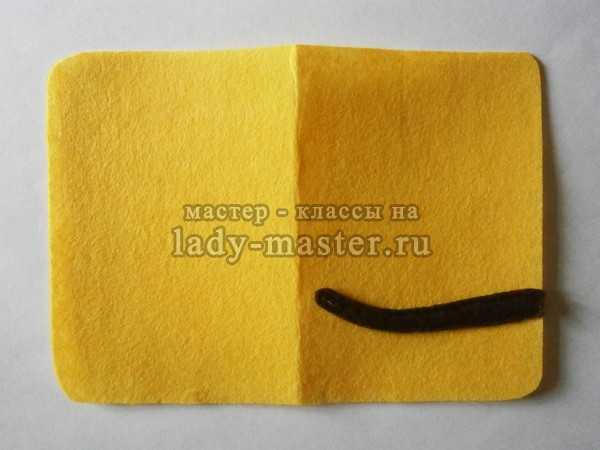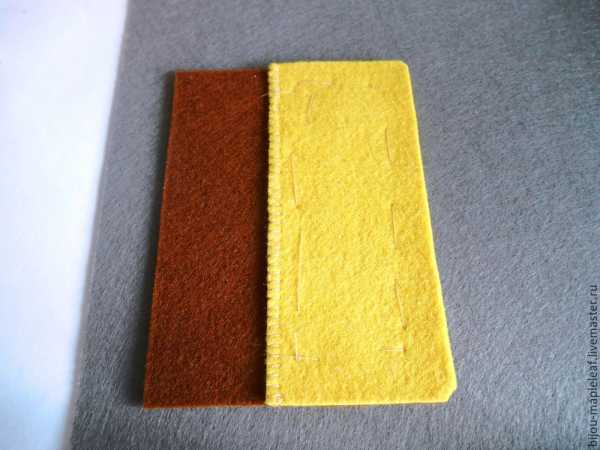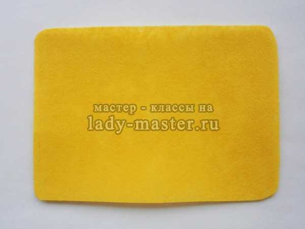 2. Вырежем из желтого фетра прямоугольник, используя подготовленную деталь и добавив на швы примерно полсантиметра.