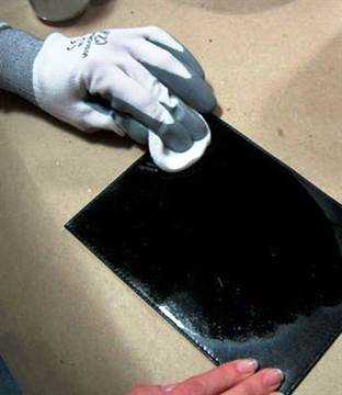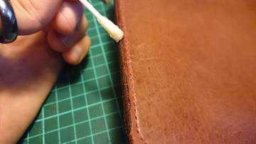 Первым шагом мы проходимся по обложке из кожзама ацетоном.
