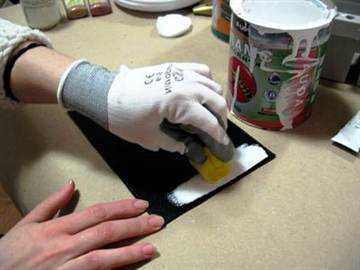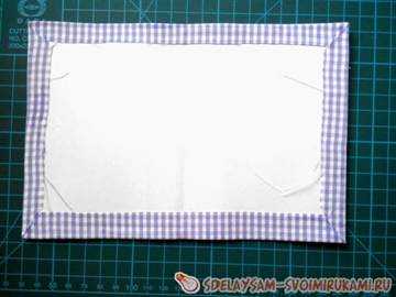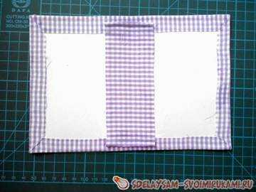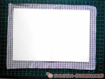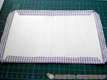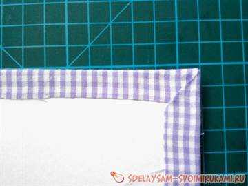 Приклеиваем к картону ткань, оставляя немного места на прогибы.