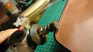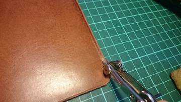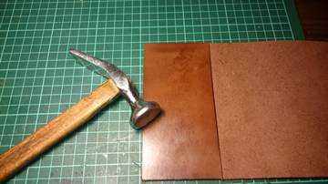 Подбираем нитку, заправляем ее в иголку и проходимся по всему периметру. Молотком простукиваем шов.