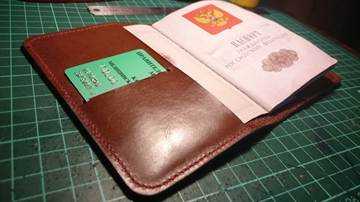 Измерьте размеры паспорта и сделайте выкройки на бумаге, добавляя пять мм на припуски и швы. Переносим выкройку на телячью кожу и вырезаем.