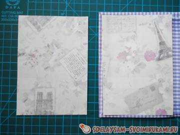 Из скрапбумаги вырезаем два прямоугольника размером с внутреннюю часть паспорта.