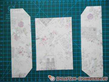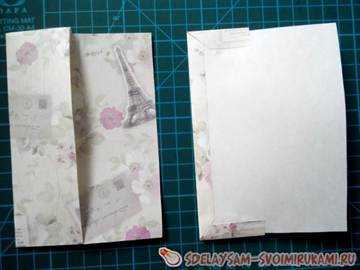 20. Сложим обложку вдвое, совместив уголки и хорошенько пригладив место сгиба.