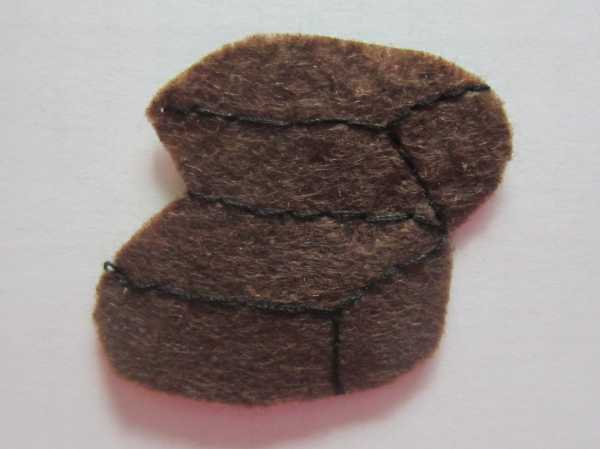 14. Возьмем детальки лап, вырезанные из светло-коричневого фетра, и пришьем их так, чтобы они частично находили на туловище совы и частично на ветку.